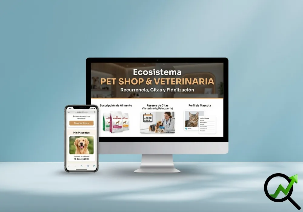 El Ecosistema PET SHOP & VETERINARIA Recurrencia & Fidelización   es la solución híbrida de Creciendo Online que une la venta de productos con la gestión de servicios. Automatiza citas de peluquería, crea suscripciones de alimento y gestiona perfiles médicos digitales.